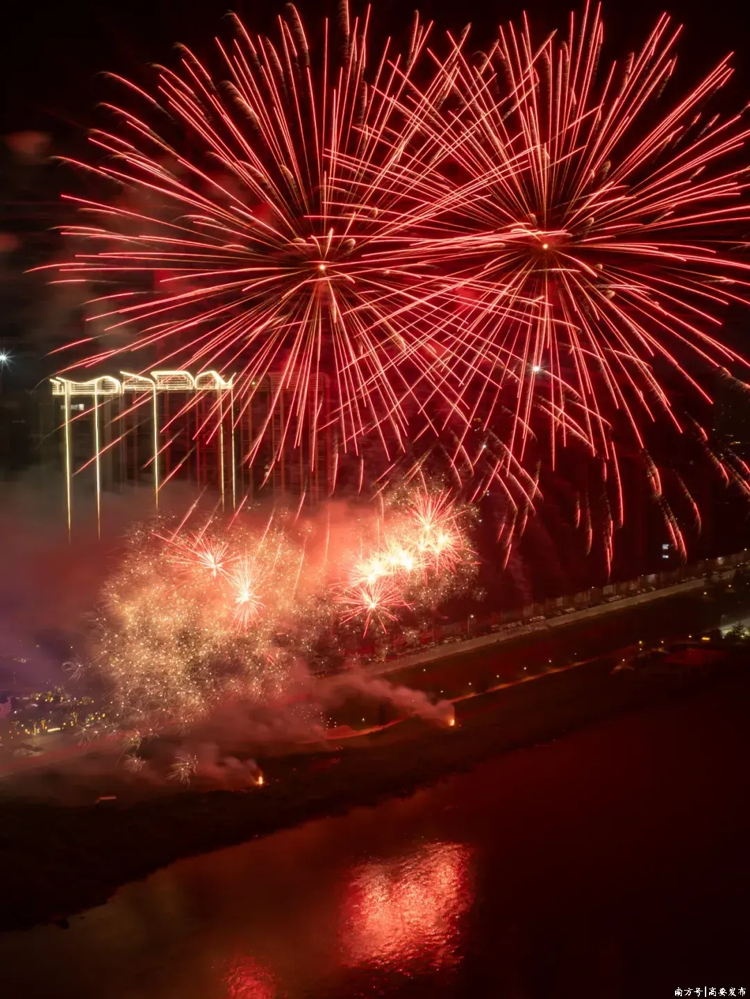 ▲ 西江边上,璀璨烟花与动人旋律交相辉映。以上两图 赖家乐 摄